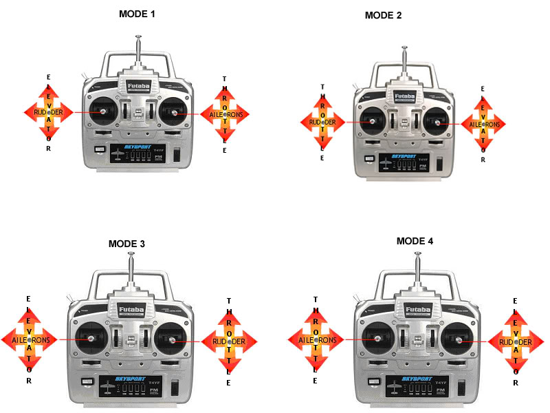 Kumanda alırken bir diğer dikkat etmeniz gereken “Mode” konusudur. Aslında kumandalar ayarlanarak mode değişimi yapılabilir ancak eğer model uçak için kullanılacaksa Mode 2 doğru seçim olacaktır. Bazı helikopterciler Mode1 i tercih edebilir. Bazen aldığınız kumanda da Mode 1 olabilir. Menüden Mode 2 ye çevirirsiniz fakat throttle yani gaz kolu diğer kollardan farklı olarak yaylı değilidir. Yani nereye getirirseniz orada kalır kendiliğinden merkeze gelmez. Bir de ayrıca model uçak kumandalarında gaz kolunun kademeli hareketi için altında tırnaklar vardır. Gazı iki tık, üç tık aç deriz ve kolda o kademeleri hissederiz. Helikopterciler ise iki kademe arasında kullanmayı da isterler. Bu nedenle helikopter kumandalarında gazın kademeli hareketi bulunmaz.